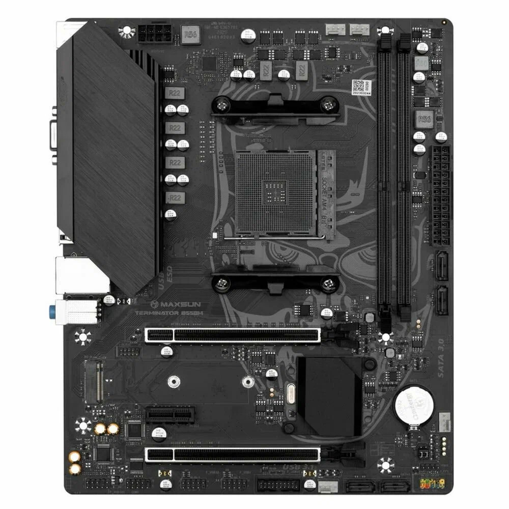 Учитывая довольно скудные возможности настроек материнских плат ноутбуков, нам нем смысле выбирать навороченную плату для процессора Ryzen 5 5600. Главное — чипсет, который должен иметь поддержку шины PCI Express 4.0. Поэтому наш выбор — бюджетная плата Maxsun MS-Terminator B550M на чипсете AMD B550.