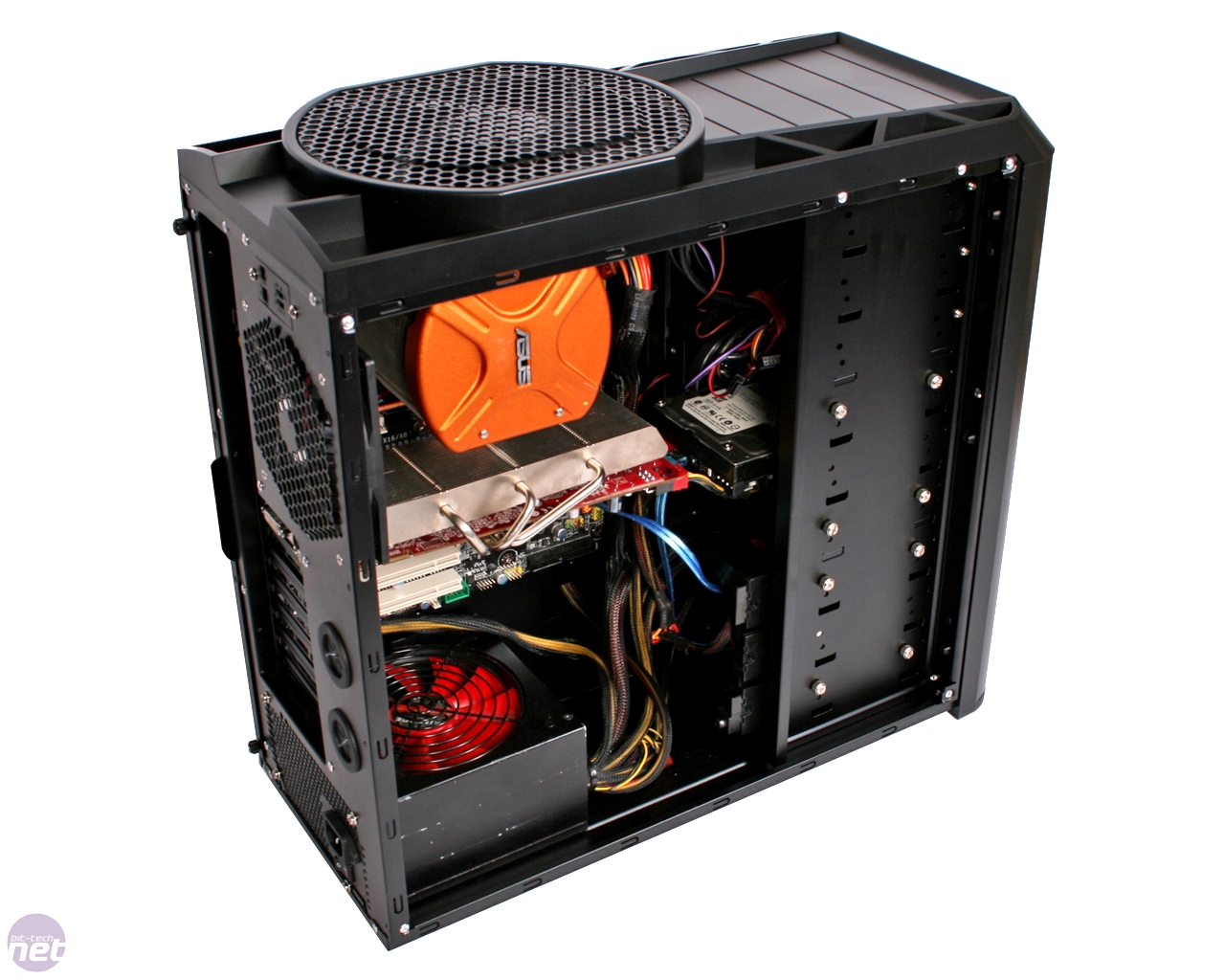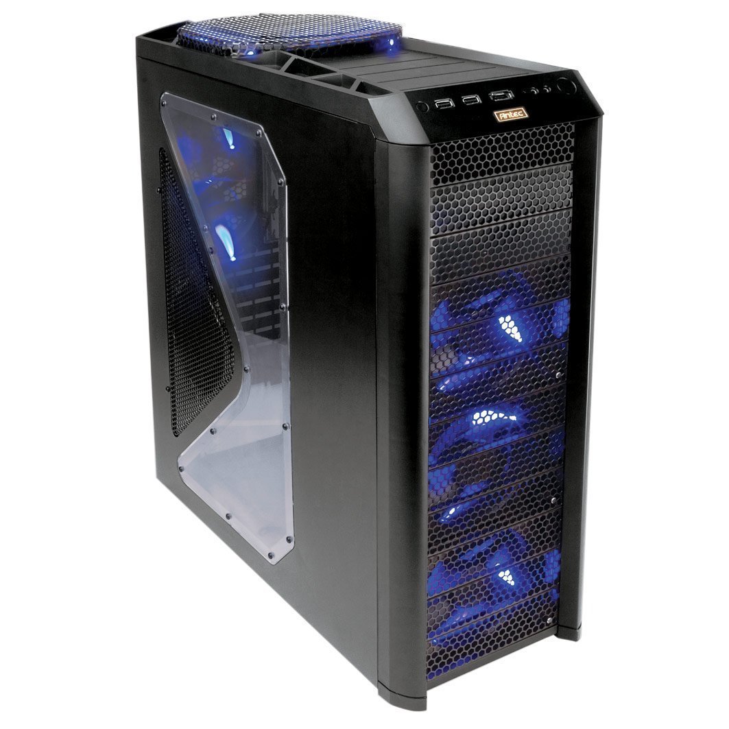 В том же 2008 году появился еще один интересный корпус, который в высоту превосходил даже бигтауер Zalman GS1000. Это Antec Twelve Hundred, который обеспечивал самый мощный продув компонентов ПК из всей сегодняшней подборки корпусов. Три "стодвадцатки" спереди, еще парочка, расположенная вертикально — на задней панели, один 120-мм на боковой и огромный 200-мм вентилятор на верхней панели. Был бы Antec Twelve Hundred еще немного шире и его можно было бы назвать идеальным корпусом для современной мощной сборки.