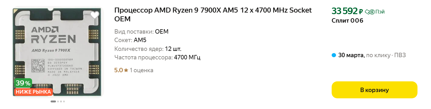Ну а на третьем месте Ryzen 9 7900X — он способен долго продержаться в новых играх за счет большого числа быстрых ядер, которых у него 12 штук.
