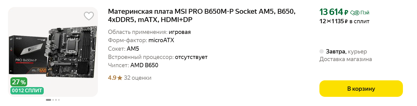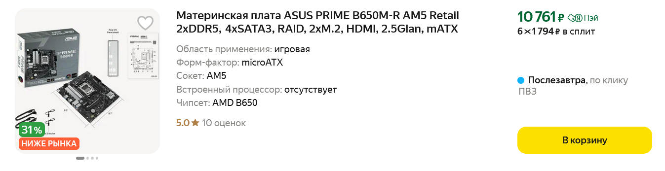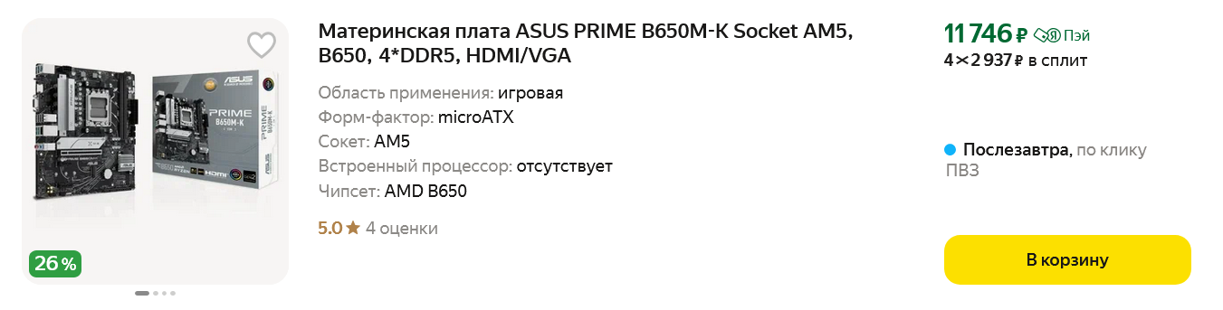 Поэтому экономить на системе питания не стоит, а платы с VRM без радиаторов брать под самые младшие процессоры с реальным энергопотреблением в играх в 40-50 ватт. Не помешает хорошая вентиляция в корпусе и дополнительный вентилятор, обдувающий систему питания — он способен сбить 10-15 градусов. Несмотря на то, что охлаждение VRM требует лишь небольшого радиатора, термопрокладки и пары болтиков для крепления, производители просят за такие платы на одну-две тысячи рублей больше. Например, для популярных шестиядерных процессоров Ryzen 5 7500F, Ryzen 5 7400F и Ryzen 5 8400F отлично подойдут вот такие материнские платы, которые можно найти на Яндекс Маркете: