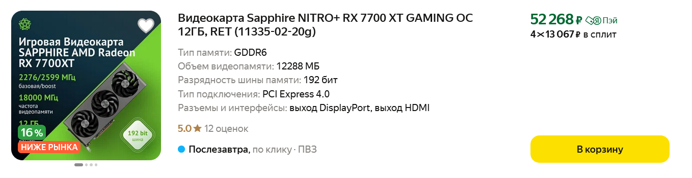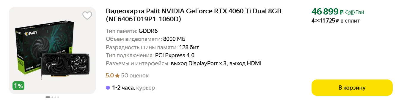 Итак, решение об апгрейде видеокарты было принято, и я даже почистил GeForce RTX 3060 от пыли, чтобы выставить ее на Авито, а для временной замены присмотрел одну интересную видеокарту, про которую через пару дней напишу отдельный блог.