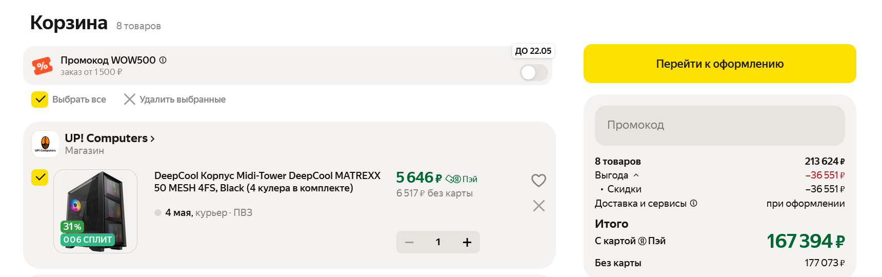 Итого с картой Пэй на Яндекс Маркете этот компьютер обойдется вам в 167394 рублей, а без нее — в 177073 рубля. Сумма немаленькая, но надо учитывать, что на этом ПК можно будет без проблем играть на мониторе с разрешением 1440p еще лет пять, а собран он из качественных и надежных комплектующих. Пишите в комментарии, а как вы думаете, хватит ли этого ПК для игр еще на пять лет? Обращу ваше внимание, что цены на момент выхода статьи могут измениться, причем как в сторону повышения, так и в обратную. А еще я порекомендую вам несколько моих новых блогов: