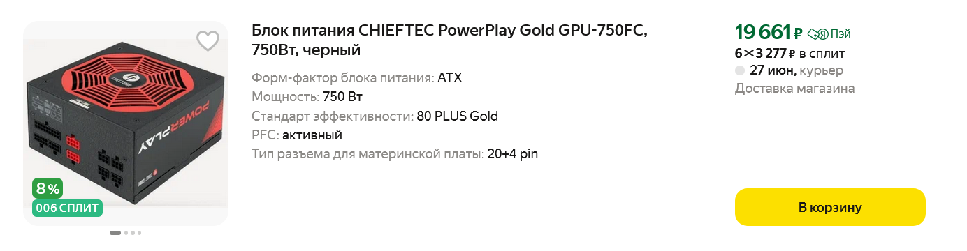 Качественный блок питания позволит вам при покупке получить еще и высокий срок гарантии, который может достигать пяти лет и даже еще дольше. А это как раз средний срок службы игрового ПК до морального устаревания. И вам не придется беспокоиться о том, что блок питания выйдет из строя, утянув за собой еще и видеокарту или материнскую плату. Например, я купил свой Chieftronic GPU-750FC еще в 2021 году, и спустя столько времени у него остался еще почти год гарантийного срока. Сегодня за такой блок питания на Яндекс Маркете просят гораздо больше, чем я отдал за него в 2021 году.