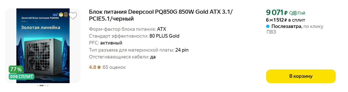 Из более недорогих моделей стоит отметить Deepcool PQ850G мощностью 850 ватт.