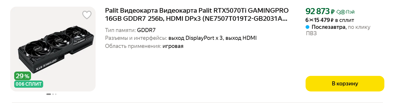 Топовые Radeon RX 9070 XT от AMD конкурируют с ней только в нетрассированных играх, да и будем честны, "красные" видеокарты с такой стоимостью выберет настолько малое количество геймеров, что в статистике Steam их число едва превысит доли процента. Например, на сегодня только 0.5% геймеров выбрали Radeon RX 7900 XTX, а первые места в статистике плотно оккупировали видеокарты от Nvidia. Да и выбрав "зеленые" модели прошлого поколения, сэкономить не получится, GeForce RTX 4070 Ti SUPER с 16 ГБ видеопамяти, немного уступающая нашей видеокарте, Palit GeForce RTX 5070 Ti GamingPro, стоит практически столько же.