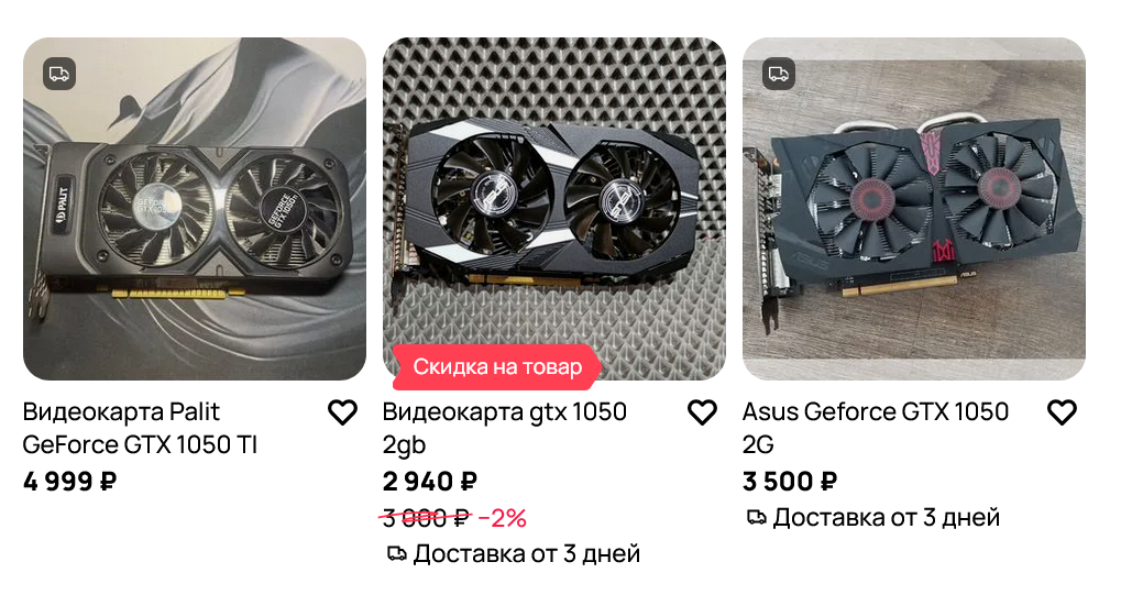 А иногда и запускать по старой памяти какие-либо игры, список которых довольно обширен. Но если вы хотите найти подобную видеокарту на Авито, то в первую очередь смотрите на самые новые — GeForce GTX 1050 или Radeon RX 460 — самую слабую из этого списка, но в некоторых играх получающую отличный бонус за счет новой архитектуры. А еще на GeForce GTX 1630, самый предпочтительный вариант, но который стоит дороже из-за новизны.