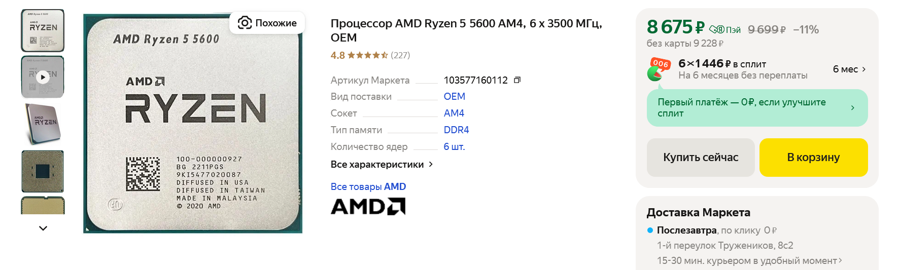 А еще Ryzen 5 5600 дешевле примерно на тысячу рублей, что в условиях максимальной экономии при сборке ПК очень важно. Лишняя тысяча рублей в таком скромном бюджете, как наш — это более производительный кулер процессора, дополнительные 100 ватт у блока питания или SSD-накопитель с более высокими скоростями.