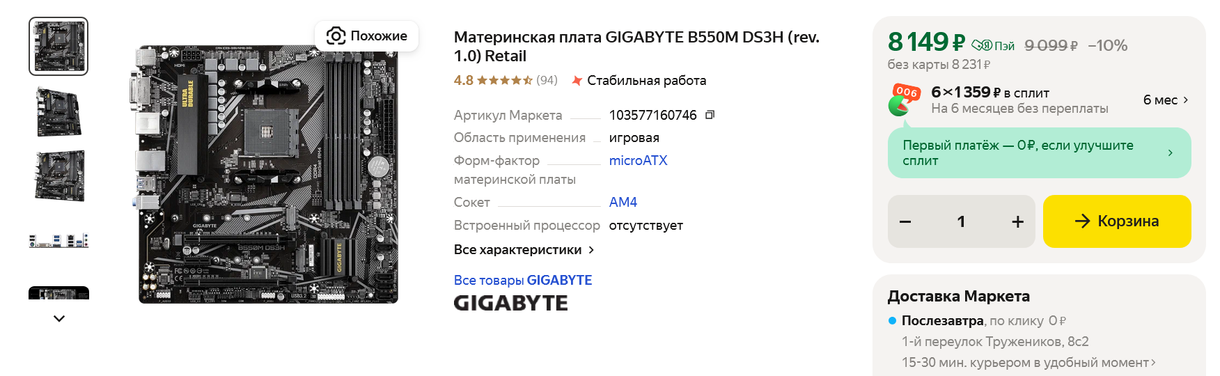 То, сколько стоят сегодня комплектующие, будем смотреть на маркетплейсе Яндекс Маркет. Но, скорее всего на момент выхода блога в печать они уже изменяться, а некоторые товары по ссылкам будут уже распроданы. В таком случае просто введите в поиск на Яндекс Маркете их названия и получите список наиболее популярных предложений продавцов.