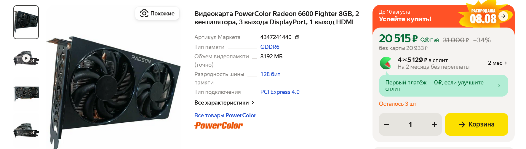 Собирая игровой ПК с таким скромным бюджетом, как наш, даже самый заядлый приверженец видеокарт Nvidia обратит внимание на модели от "красного" конкурента, AMD. Ведь GeForce RTX 3050 в версии 8 ГБ стоит практически как Radeon RX 6600, при этом отставая от нее примерно на 32% в среднем. А такие аргументы, как лучшая работа трассированных игр на "зеленых" видеокартах с этой парочкой не работают, ведь и GeForce RTX 3050, и Radeon RX 6600 слишком слабы для игр с лучами. И если их отключить, в еще — скинуть некоторые настройки графики, выясняется, что Radeon RX 6600 вполне справляется со всеми новыми играми. И это с ценой всего лишь чуть-чуть превышающей психологический порог в 20000 рублей.
