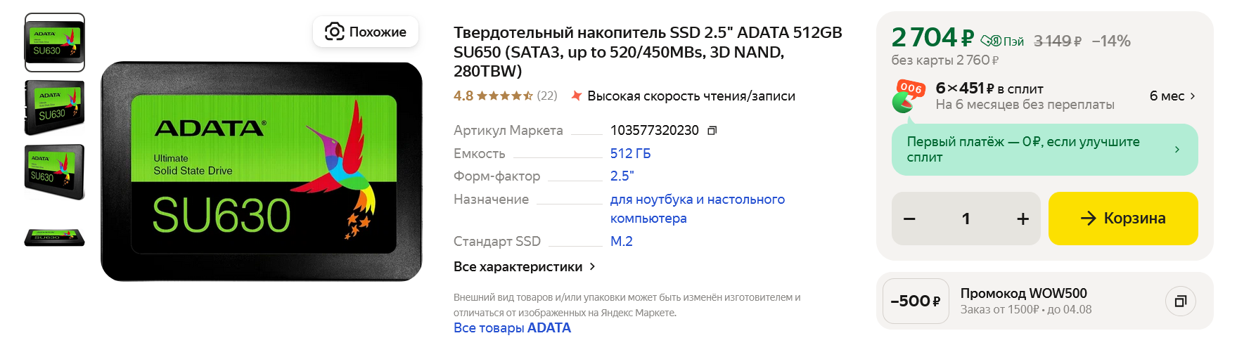 Поскольку наш компьютер предназначен в первую очередь для учебы, то мы сэкономим еще пару тысяч рублей, взяв SSD ADATA SU650 объемом 512 ГБ. Этого хватит для Windows, программ и пары даже очень больших игр. А чтобы оставить возможность апгрейда накопителей в ПК, мы возьмем SSD с интерфейсом SATA в форм-факторе 2.5", чтобы оставить свободным слот M.2 и еще сильнее сэкономить. И как только у вас появятся деньги и нужда в дополнительном объеме накопителей, можно будет купить и легко установить быстрый M.2 SSD объемом 1 ил 2 ТБ, а старый перевести на роль дополнительного.