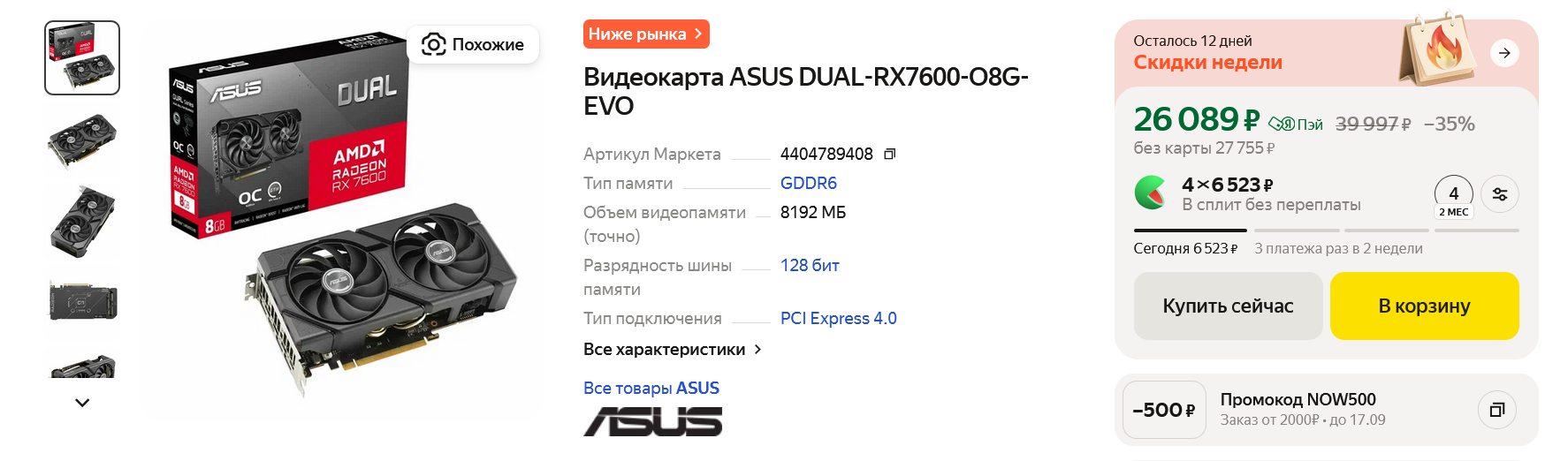 С Radeon RX 7600 ситуация еще более интересная, стоит она иногда дешевле GeForce RTX 3060 и при этом выдаст большую производительность в большинстве игр даже на системе с шиной PCI Express третьей версии. Но покупать эту модель стоит только в том случае, если удастся найти новой примерно за 24000-26000 рублей, в противном случае лучше поискать ее на вторичном рынке. И, к сожалению, можно отметить, что найти ее по столь низкой цене сегодня трудновато, а за 30-32 тысячи рублей уже можно взять GeForce RTX 5060, которая предложит и DLSS, и генератор кадров, и более высокую производительность.