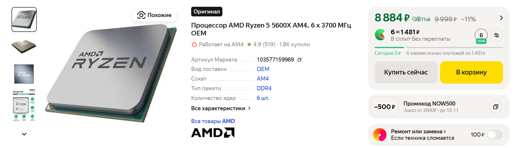 Это будет краеугольный камень нашей сборки, ведь для онлайн игр требуется довольно высокая процессорная мощность, а еще модель процессора будет определять, будет ли хоть какой-то потенциал апгрейда у этого ПК в будущем. А брать заведомо устаревший процессор - это значит обрекать себя на очень невыгодное вложение денег, так как он будет мало ликвидным на вторичном рынке уже в момент покупки. Причем вместе с процессором быстро подешевеют еще и материнская плата с оперативной памятью. Но популярная и перспективная платформа AM5 никак не вписывается в наш бюджет, особенно после того, как начала дорожать оперативная память стандарта DDR5.