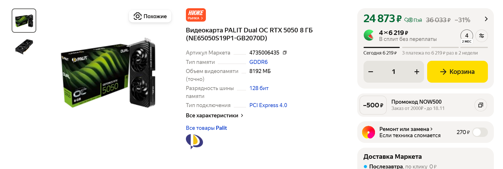 Поэтому в этой сборке не будет ставшей частой гостьей в бюджетных ПК видеокарты Radeon RX 6600. Но не только по причине завершения поддержки, личных пристрастий или потенциальных проблем, но и потому, что цены на GeForce RTX 5050 уже совсем близки к этой модели, тем более, что недорогих Radeon RX 6600 на Яндекс Маркете продается очень немного. GeForce RTX 5050 можно найти уже дешевле 25000 рублей и за переплату всего в 5000-6000 рублей мы получаем гораздо более мощную, экономную и перспективную видеокарту.