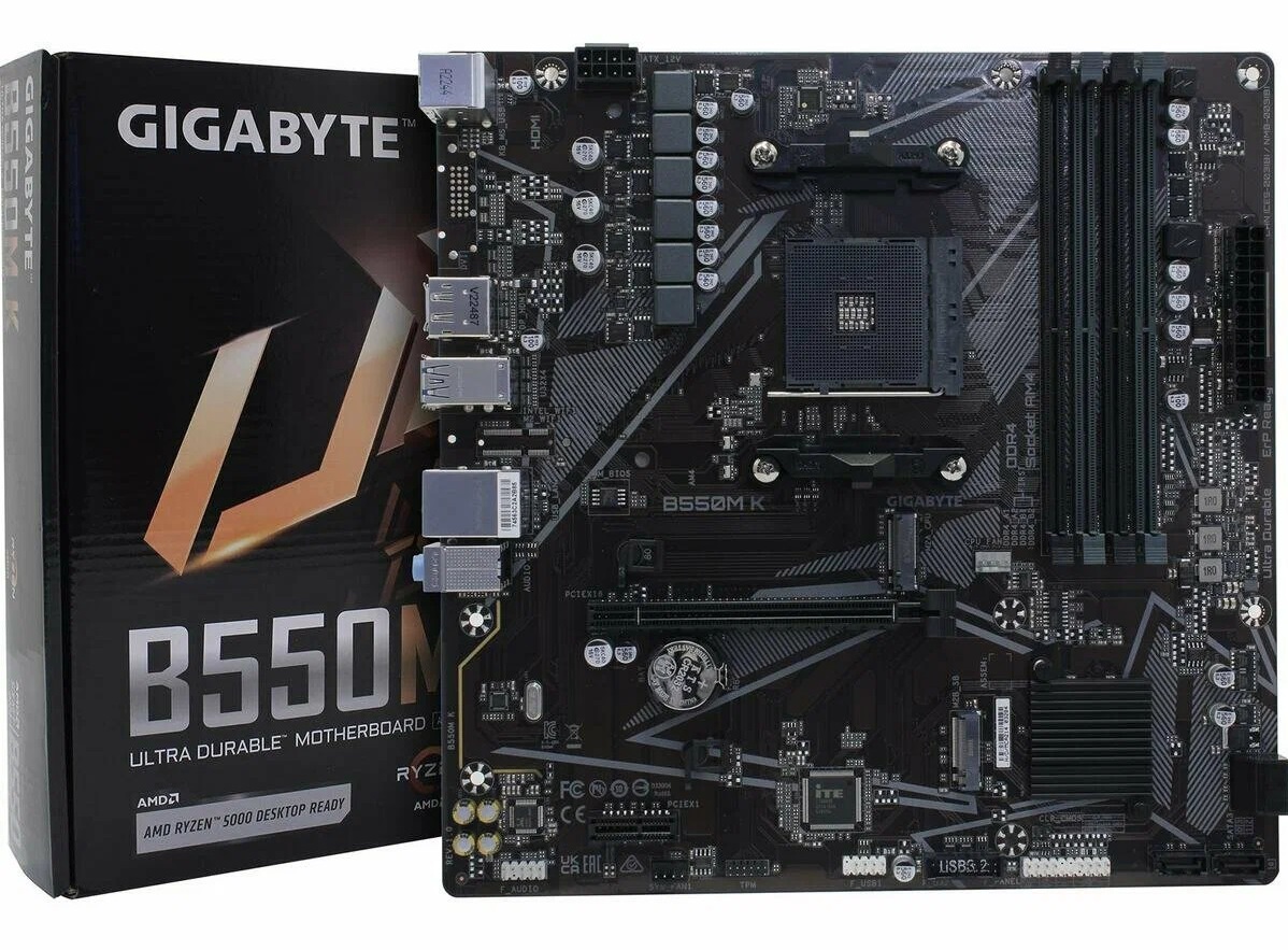 А вот цены на материнские платы AM4 не могут не радовать, например, GIGABYTE B550M K (rev. 1.0) стоит всего 5813 рублей. И это модель на базе чипсета AMD B550 с шиной PCI Express 4.0. Минус у этой модели только один - отсутствие радиаторов на системе питания, но с Ryzen 5 5600X она вполне справится. А если немного ограничить его аппетиты парой кликов в BIOS, например, до 55 ватт, то и игровая производительность не сильно пострадает, и температуры VRM станут намного ниже.