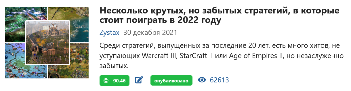 Отдельно стоит упомянуть два больших цикла публикаций. Один из них – про старые игры жанров шутеры и экшены, вышедший в 11 частях, в которых можно найти практически все популярные игры этих жанров, конца 1990-х – начала 2000-х годов. И этот список будет особенно полезен геймерам, ищущим отличные ретро-игры с низким порогом вхождения. Еще более впечатляющая подборка публикаций посвящена старым стратегиям – оных вышло аж 25 частей и я до сих пор периодически перечитываю их, выбирая ту или иную игру для прохождения. И все их я тоже приплюсовал к числу полезных.