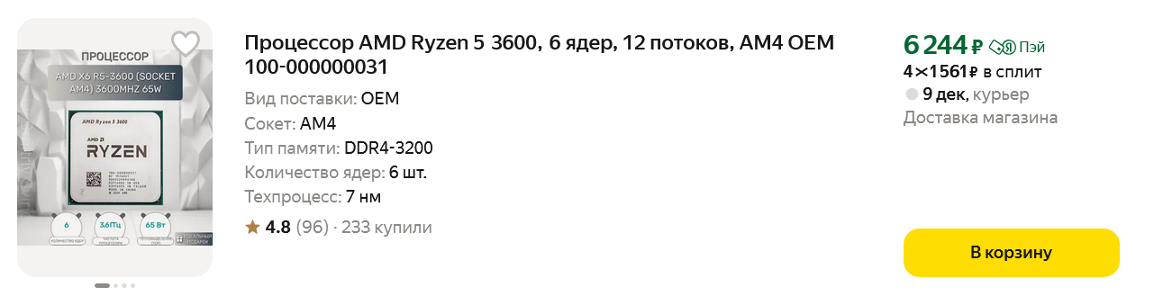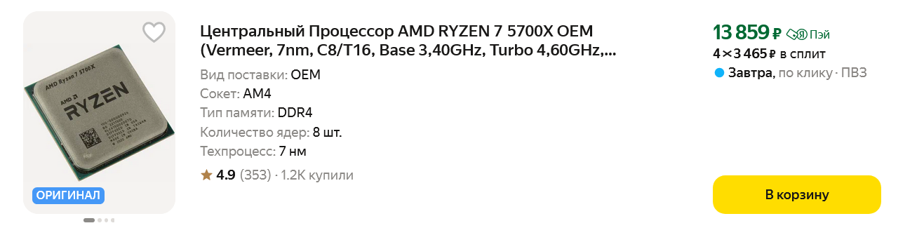 Начнем мы с самых бюджетных процессоров, а примеры цен возьмем на маркетплейсе Яндекс Маркет, но вам нужно учесть, что цены сегодня быстро меняются и на момент выхода статьи могут вырасти, но иногда бывает и их снижение.