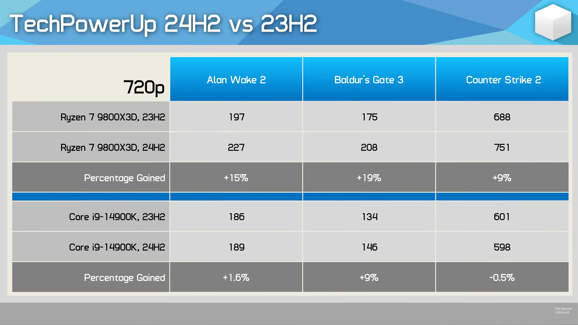 Многие все еще помнят одну из бесконечных проблем Windows 11, когда работающие под управлением этой операционной системы процессоры Ryzen показывали заметно худшие результаты по сравнению со старой ОС Windows 10. Тогда в некоторых играх под Windows 11 производительность снижалась на 10–15% по сравнению с теми же процессорами, работающими под Windows 10. Компания Microsoft исправила эту проблему в новых редакциях Windows 11, и процессоры Ryzen получили отличный прирост производительности, в некоторых играх до 19%, а вот модели от Intel этим похвастаться не могли.