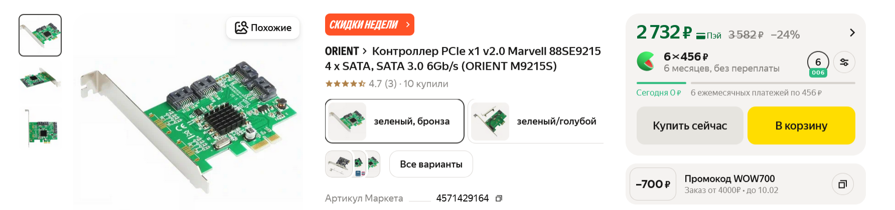 Если вам стало не хватать места на основном накопителе, проще всего добавить в ПК SATA SSD в форм-факторе 2.5" и жесткий диск 2.5" и 3.5". Обычно для этого хватает SATA портов даже на бюджетных материнских платах, которых обычно четыре штуки. Но не всегда они расположены удобно и, к примеру, на моей материнской плате GIGABYTE B450M H один из SATA-портов сразу блокируется видеокартой, а доступ к еще одному будет очень неудобен, возможно даже, что видеокарта будет упираться в SATA кабель. Решить эту проблему можно с помощью SATA контроллера, подключаемого в разъем PCI-E x1, который добавит два или четыре порта.