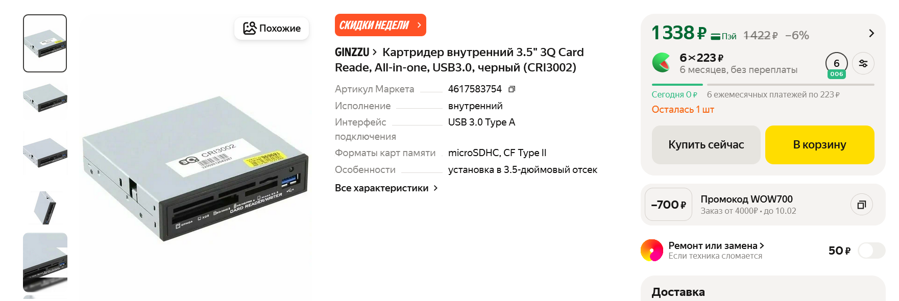 Добавляем универсальный кард-ридер