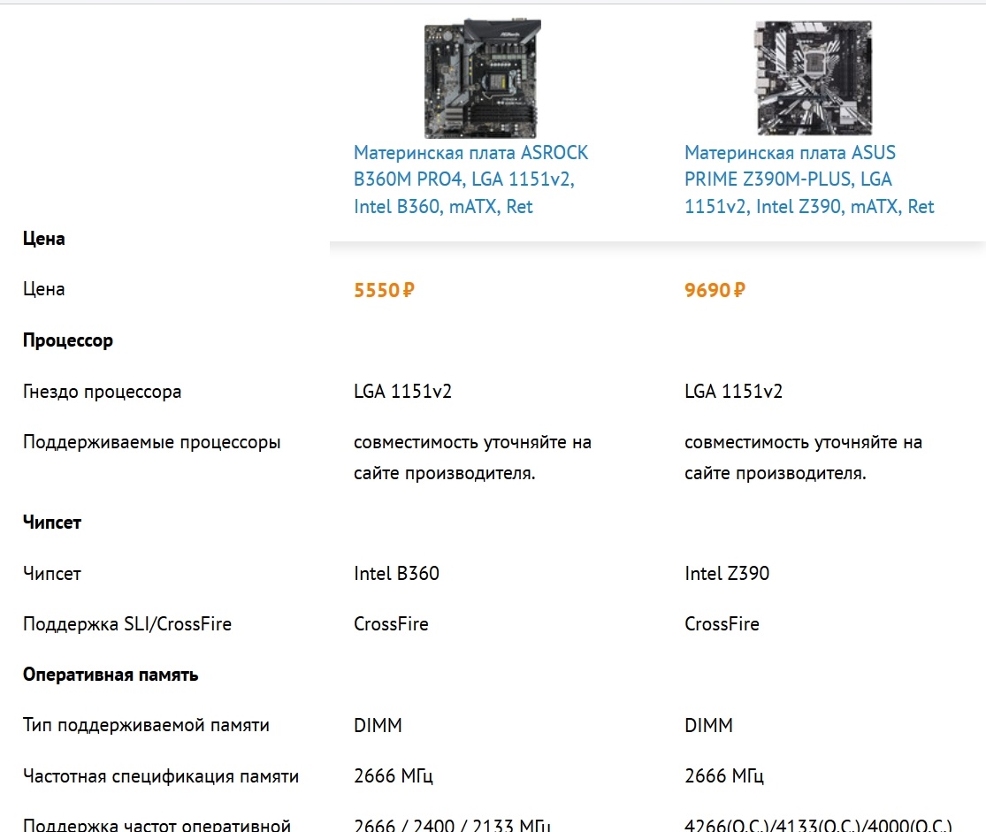 А это не дешевое удовольствие! Я специально, для наглядности, взял не самую дешевую плату под Core i7 8700 - ASROCK B360M PRO4. А под разгон не самую дорогую, которая будет на пределе тащить Core i7 8700K в разгоне - ASUS PRIME Z390M-PLUS.