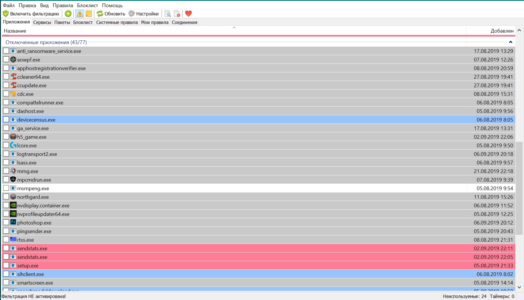 При желании можно углубиться в настройки программы, там есть правила и для системных сервисов и приложений, но мне хватает простой фильтрации.