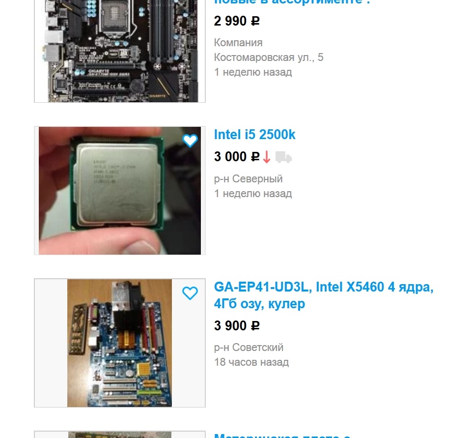 Начнем с процессора, я стал искать Intel Core i5-2500K. Этот легендарный процессор до сих пор позволит играть в любые игры, а стоит сущие копейки. Средняя цена - от 3000 рублей.
