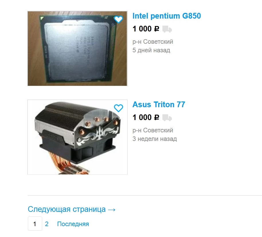 Кулер для процессора - ASUS Triton 77 за 1000 рублей.