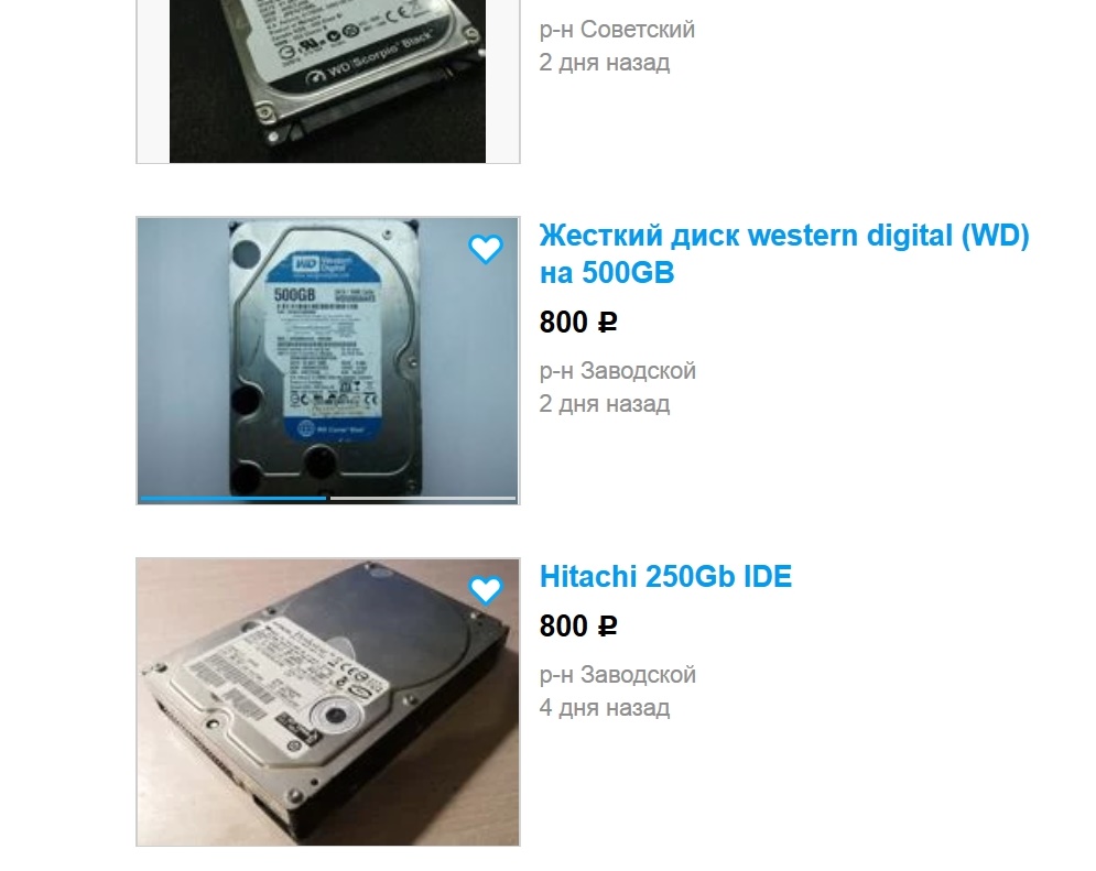 Накопители тоже возьмем б/у. 120 ГБ SSD-накопитель WD Green за 1100 рублей и HDD на 500 ГБ под файлы за 800 рублей. Эти старые HDD намного надежнее новых и работают десятилетиями.