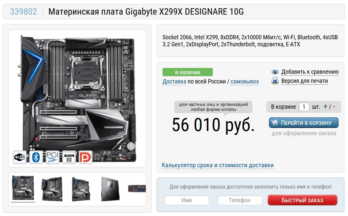 Материнская плата для него будет Gigabyte X299X DESIGNARE 10G