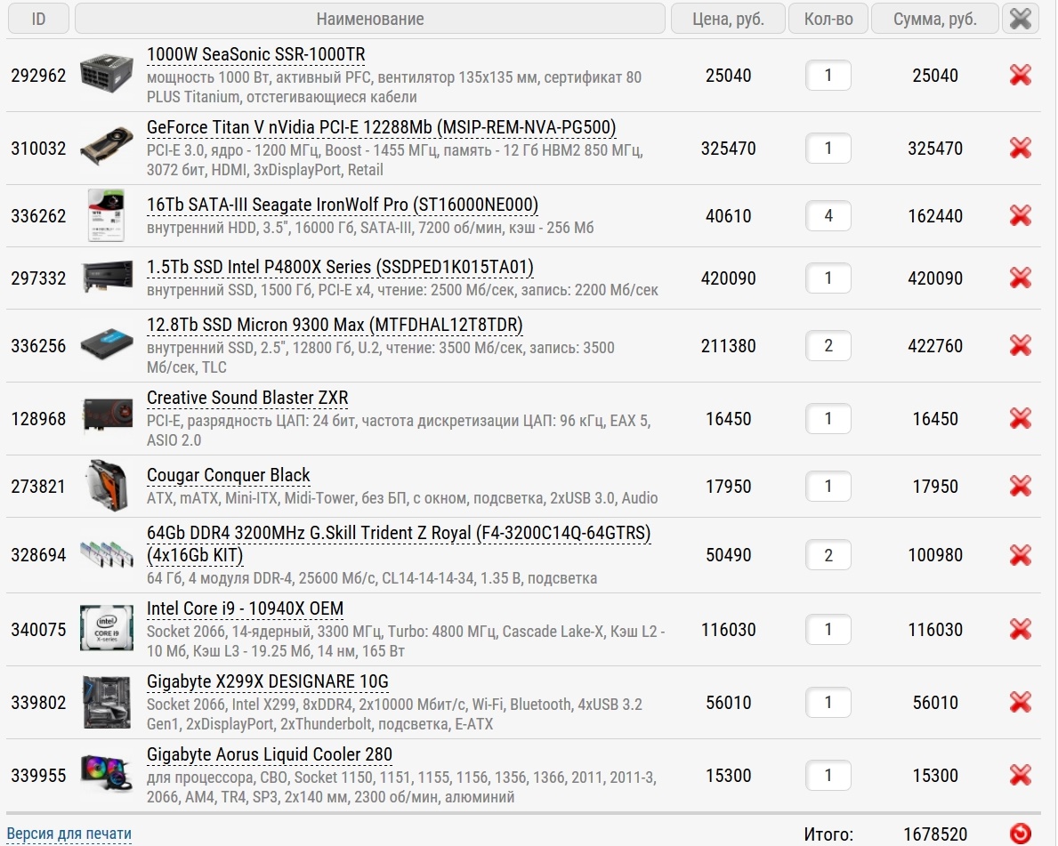 Сборка достигла стоимости в огромную сумму 1678520 рублей.