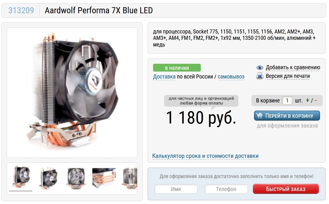 Охлаждать его будет довольно неплохой кулер Aardwolf Performa 7X Blue LED. Продукция этой компании очень похожа на продукцию Zalman. И, судя по отзывам, практически ей не уступает.