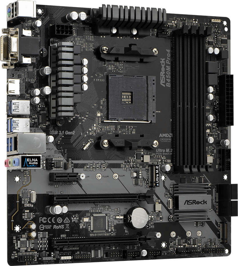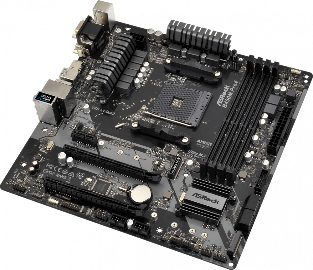 А ASRock B450M PRO4 сочетает в себе довольно низкую цену, но вполне приличное качество компонентов.