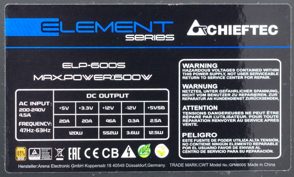 Поэтому я остановил свой выбор на Chieftec (ELP-600S) мощностью 600 ватт.