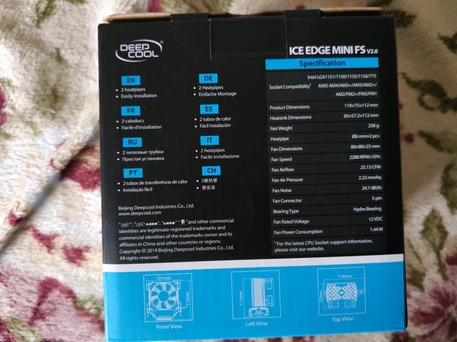 Но денег у меня хватило только на недорогой и миниатюрный DEEPCOOL ICE EDGE MINI FS V2.0, всего с двумя теплотрубками и вентилятором размером 80 мм.
