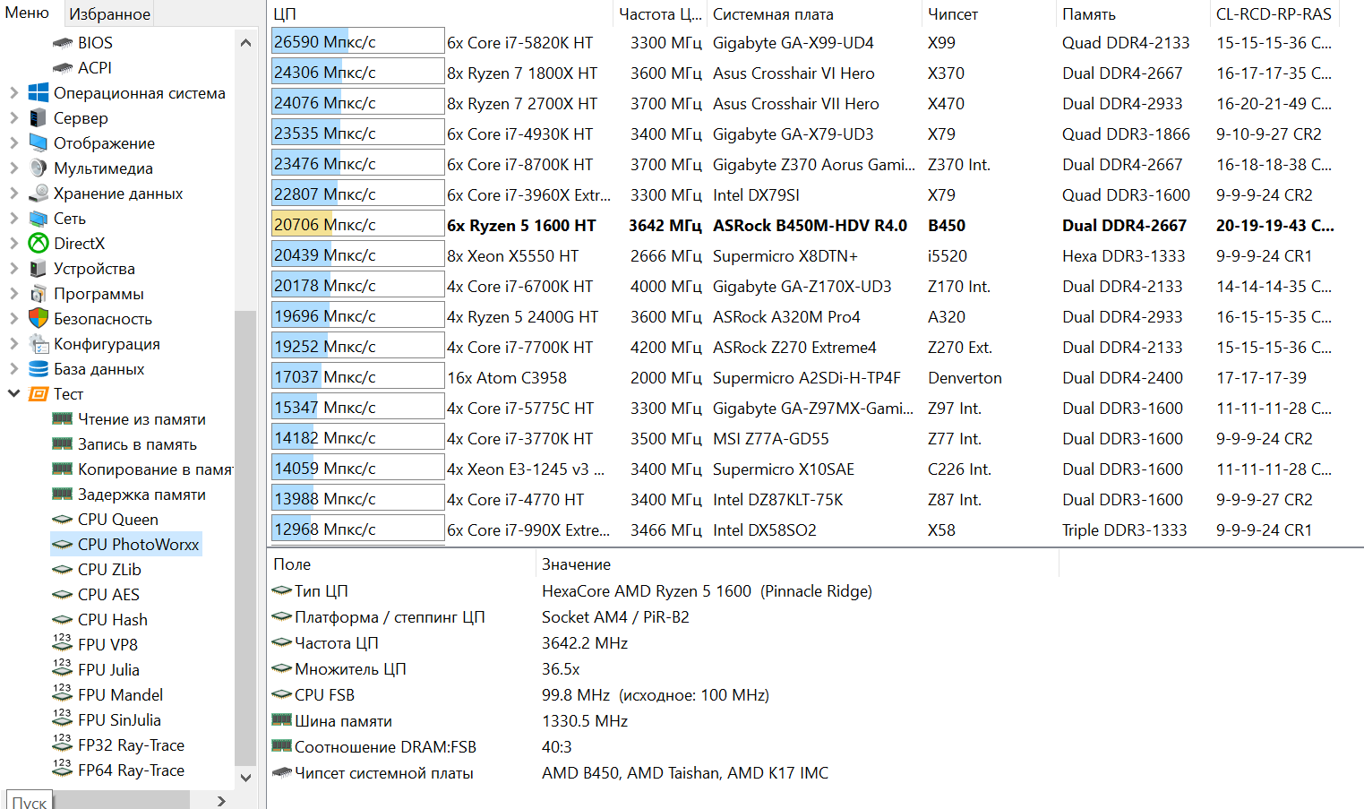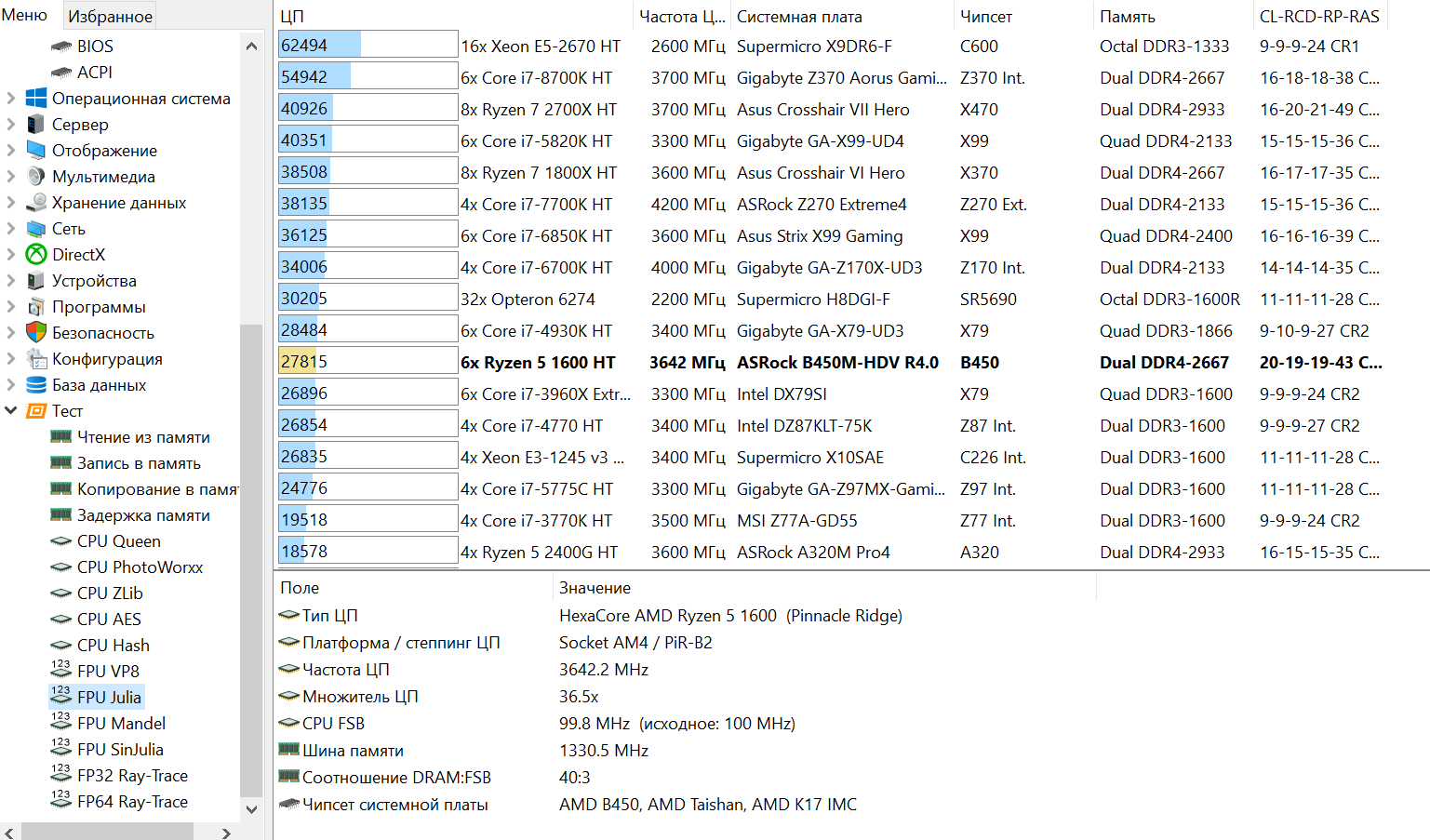 Но даже с такой низкой скоростью и высокой латентностью памяти, Ryzen 5 1600 в синтетике показывает отличные результаты.