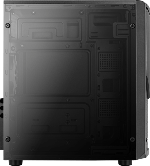 Боковая стенка выполнена из прозрачного оргстекла. В корпусах такого типа, не слишком глубоких, очень удобно то, что передний вентилятор дует прямо на видеокарту, заметно улучшая ее температурный режим.