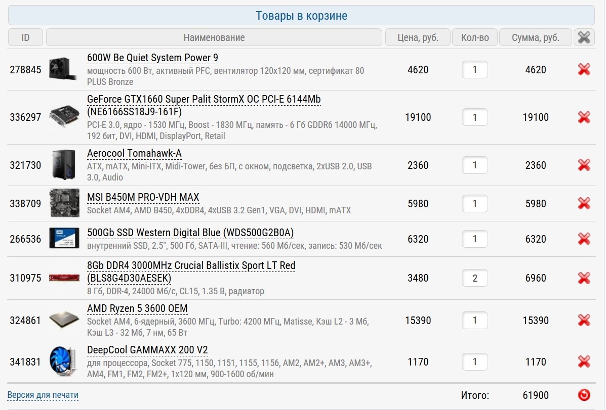 Оптимальная игровая сборка для игр в Full HD за 61900 рублей