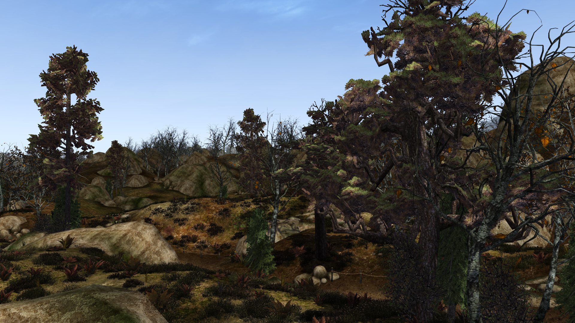 Морровинд был прекрасен в 2002 году, но сейчас выглядит очень минималистично. Очень мало растительности, малая дальность обзора и т.д.
