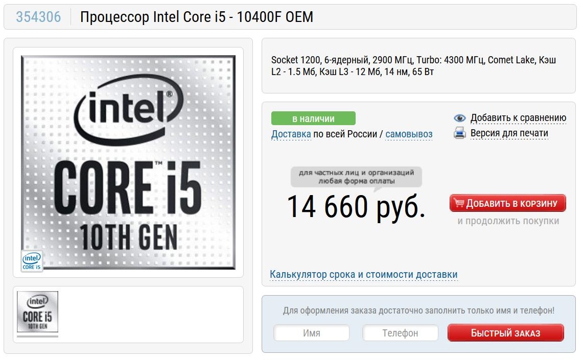 Core i5-10400F стоит 14660 рублей, что делает его опасным конкурентом для Ryzen 5 3600.