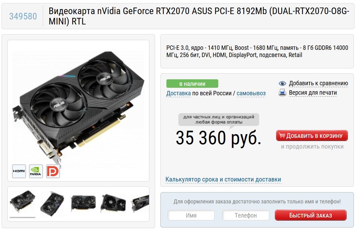Видеокарта в сборке будет от ASUS - GeForce RTX 2070 DUAL-RTX2070-O8G-MINI.