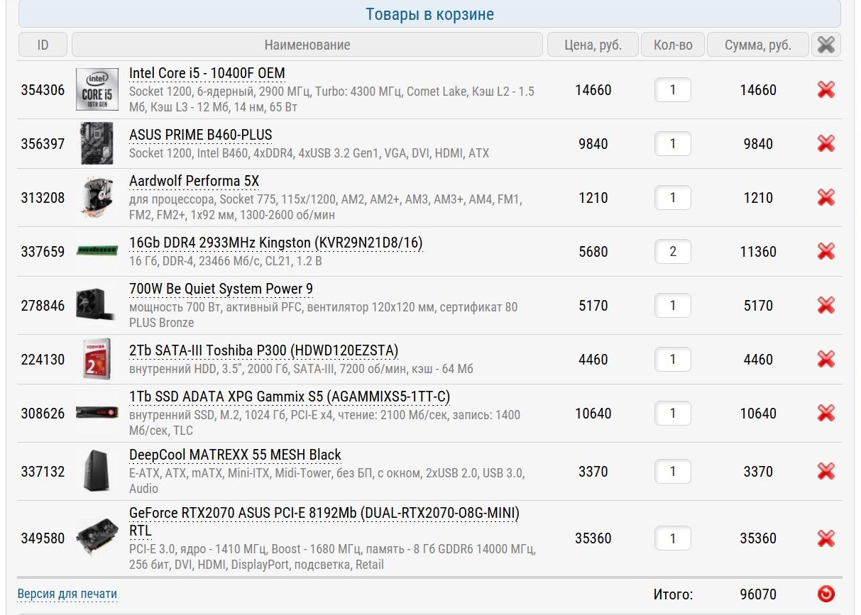Ну вот, сборка и готова, она обойдется вам в 96070 рублей. Но запас по всем компонентам у нее такой, что лет на 5 вы можете забыть об апгрейде.