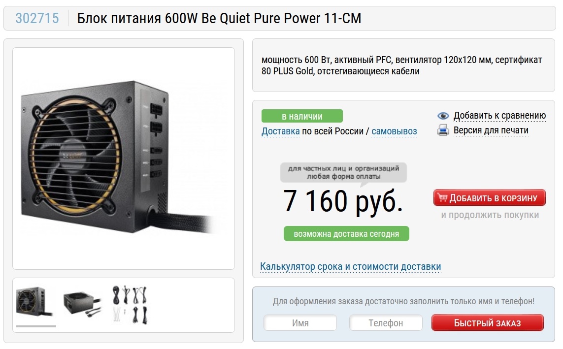 Вот и в этот раз я выбрал Be Quiet Pure Power 11-CM мощностью 600 ватт.