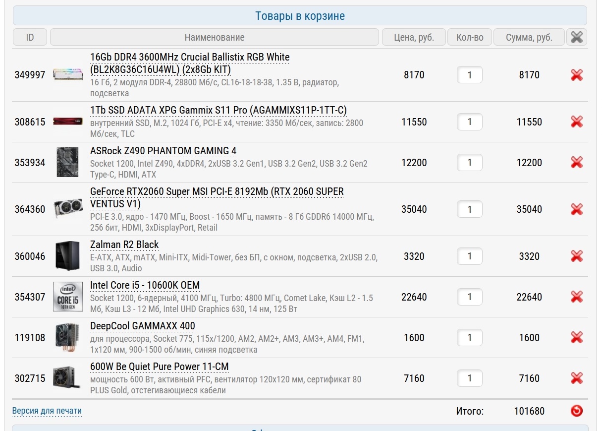 За комплектующими я отправился в Регард. Core i5-10600K стоит сейчас там 22640 рублей.