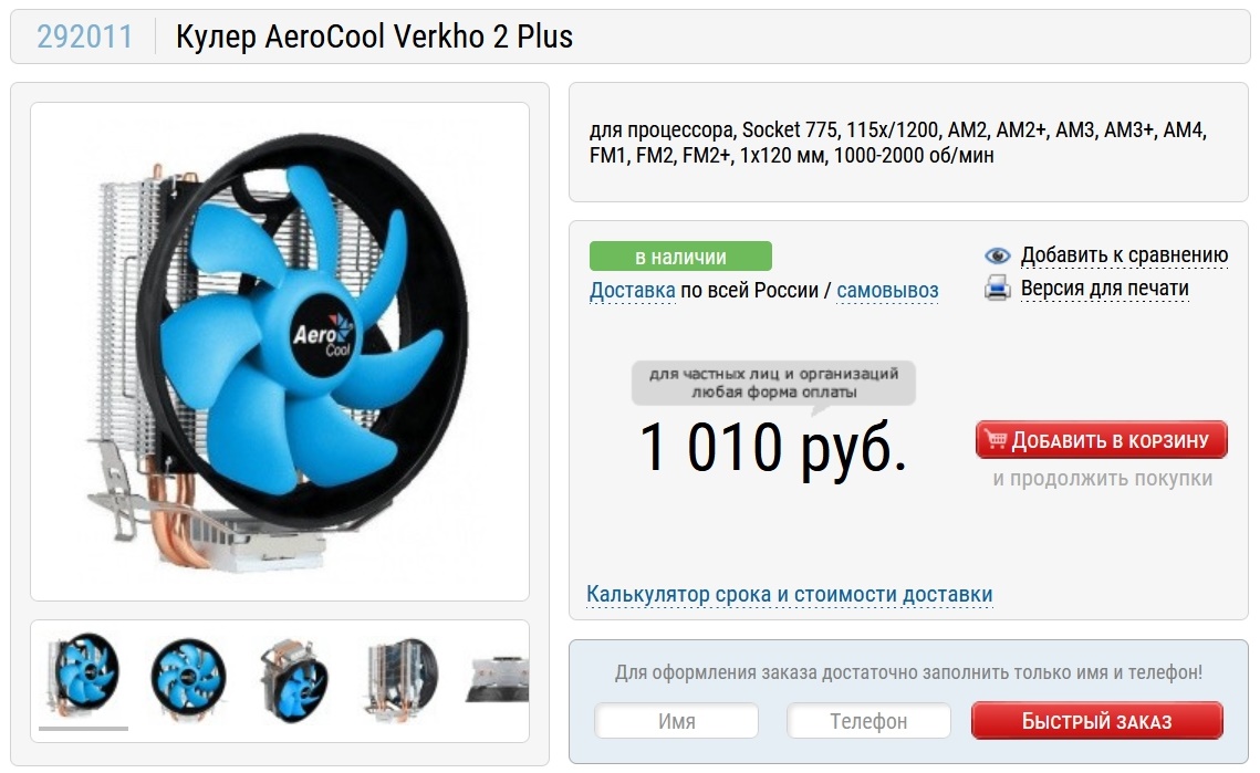Кулер для процессора будет бюджетный, но с тихим вентилятором на 120 мм - AeroCool Verkho 2 Plus. Больше для этой сборки не потребуется, так как скорее всего при разгоне Ryzen 5 1600 мы упремся в систему питания материнской платы, чем в температуру процессора.