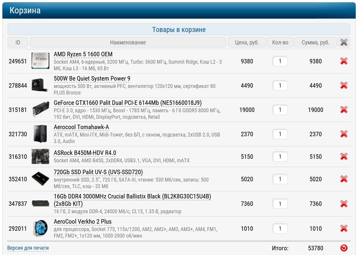 Ну вот, сборка и готова. Обойдется она вам всего в 53780 рублей. Цены актуальны на 26 сентября 2020 года.