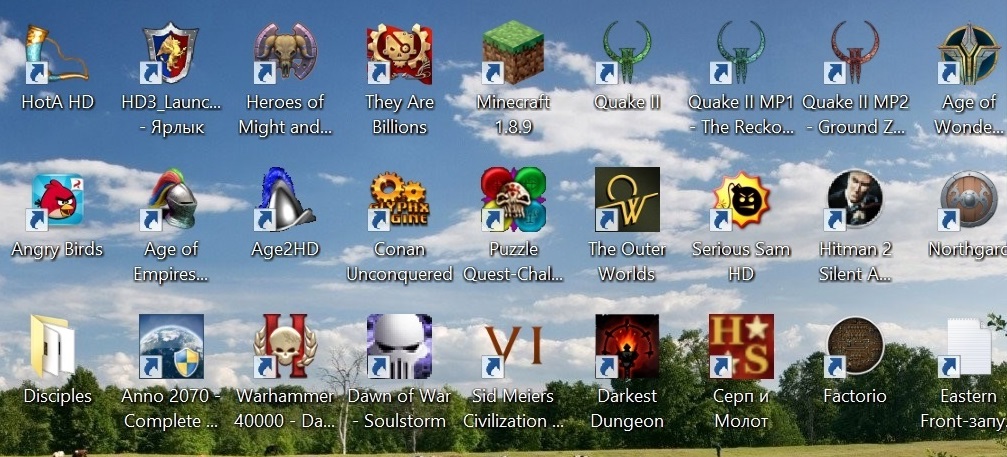 В первую очередь в глаза бросаются старые добрые стратегии: Heroes of Might and Magic III: Horn of the Abyss, Disciples II: Dark Prophecy (ярлыки в папке Disciples), Heroes of Might and Magic V, Warhammer 40,000: Dawn of War – Soulstorm, Age of Empires II HD и Company of Heroes: Eastern Front.
