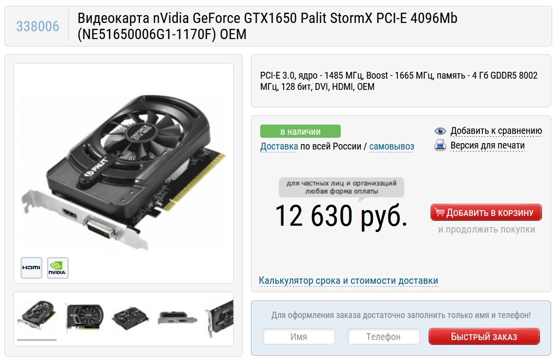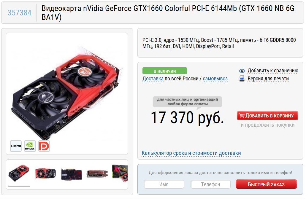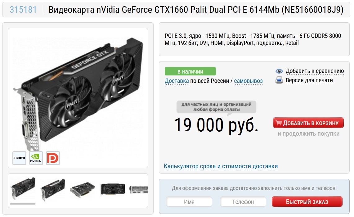 Одна из простых моделей GeForce GTX 1660 от Colorful стоила чуть дороже 17000 рублей, а сегодня за похожую модель от Palit в Ситилинке нужно отдать 68190 рублей.