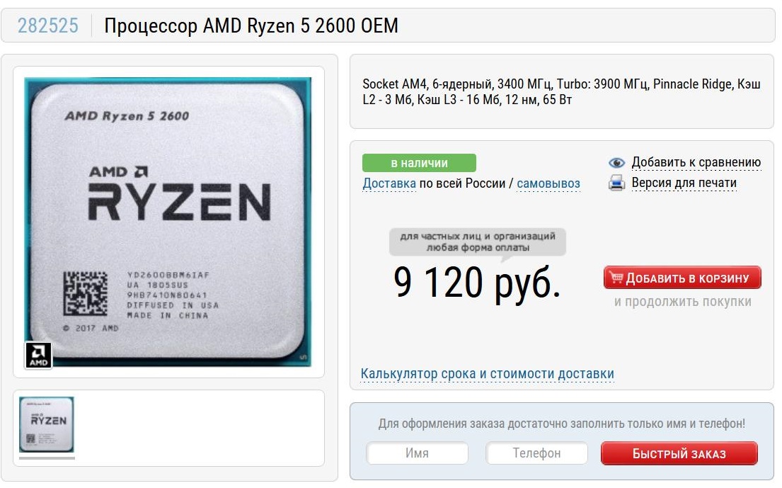 Ryzen 5 2600 перевалил в цене за 9000 рублей.