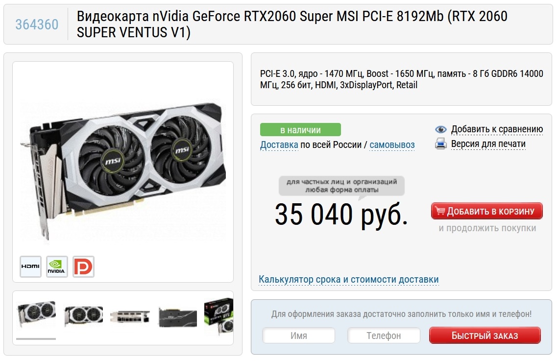 А цены на GeForce RTX 2060 SUPER перевалили за 35000 рублей.