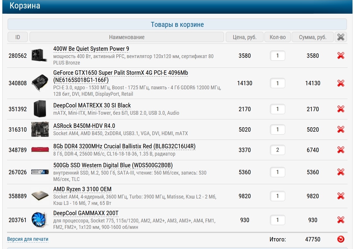 А итоговая стоимость компьютера составила чуть более 50000 рублей.
